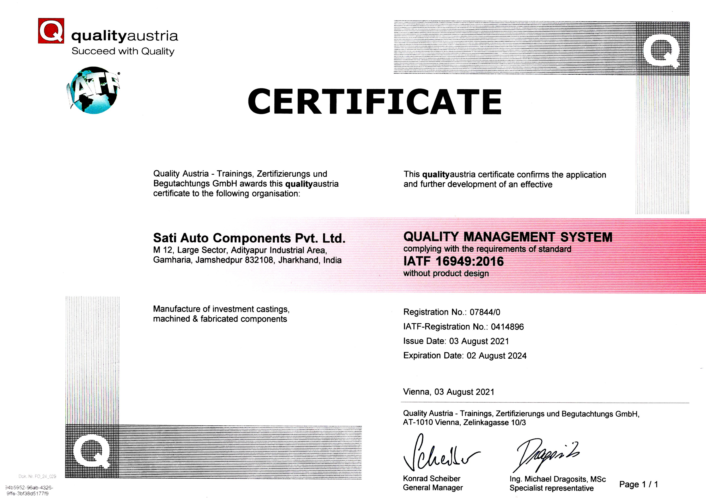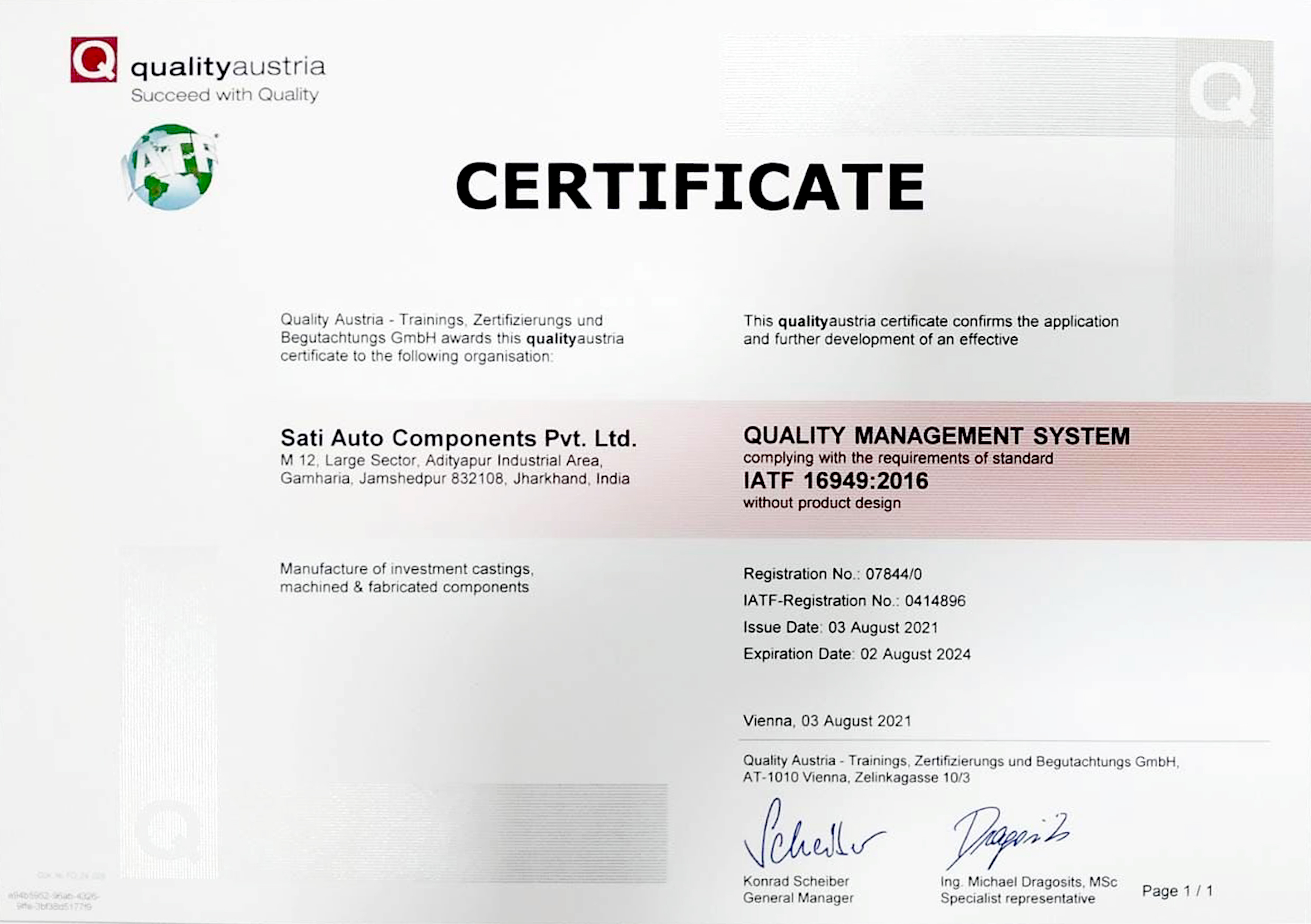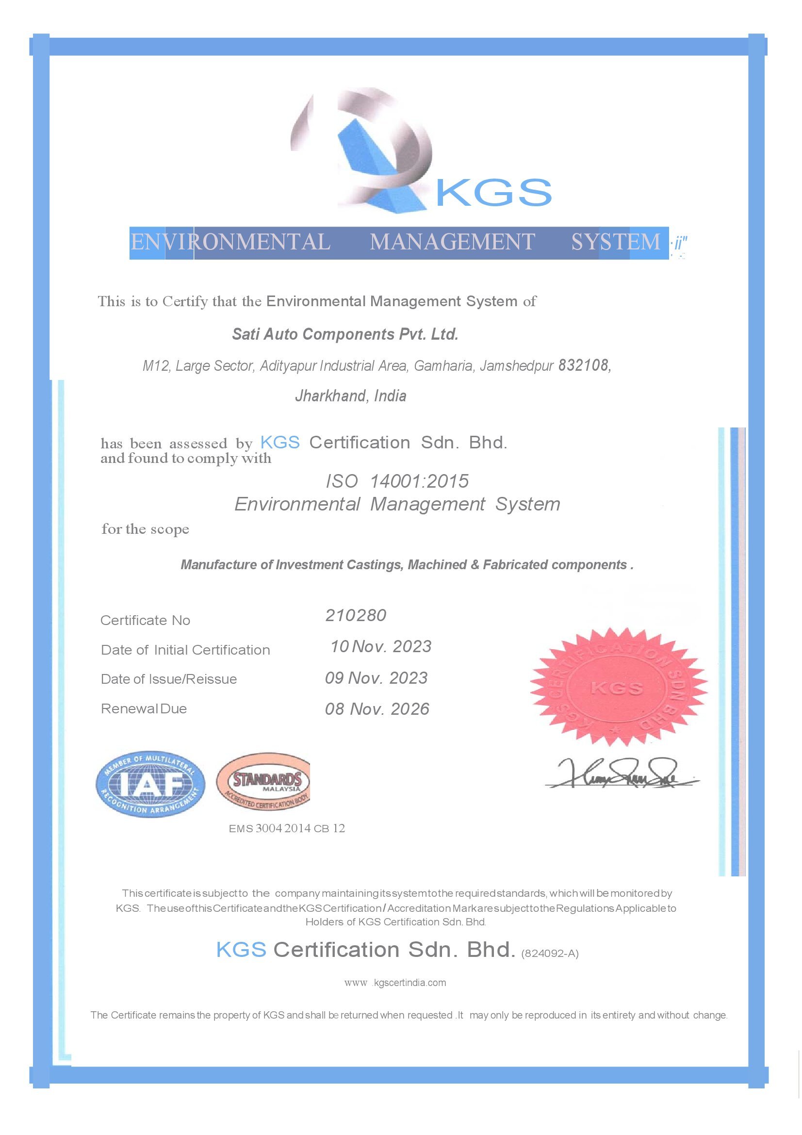 We are an IATF/16949:2016 certified auto components manufacturing company situated at Adityapur Industrial Area, Seraikela-Kharsawan , Jharkhand - 832108.