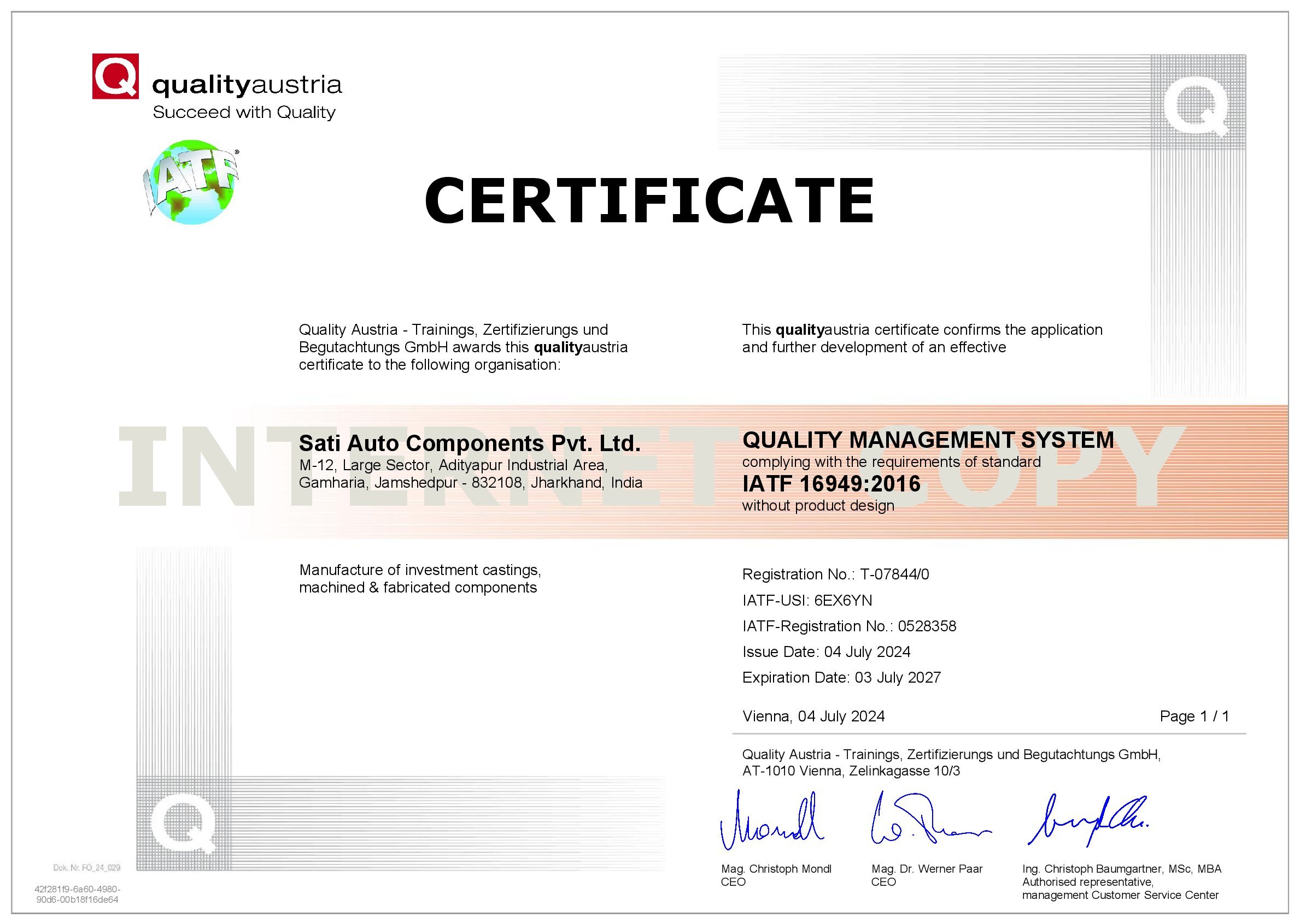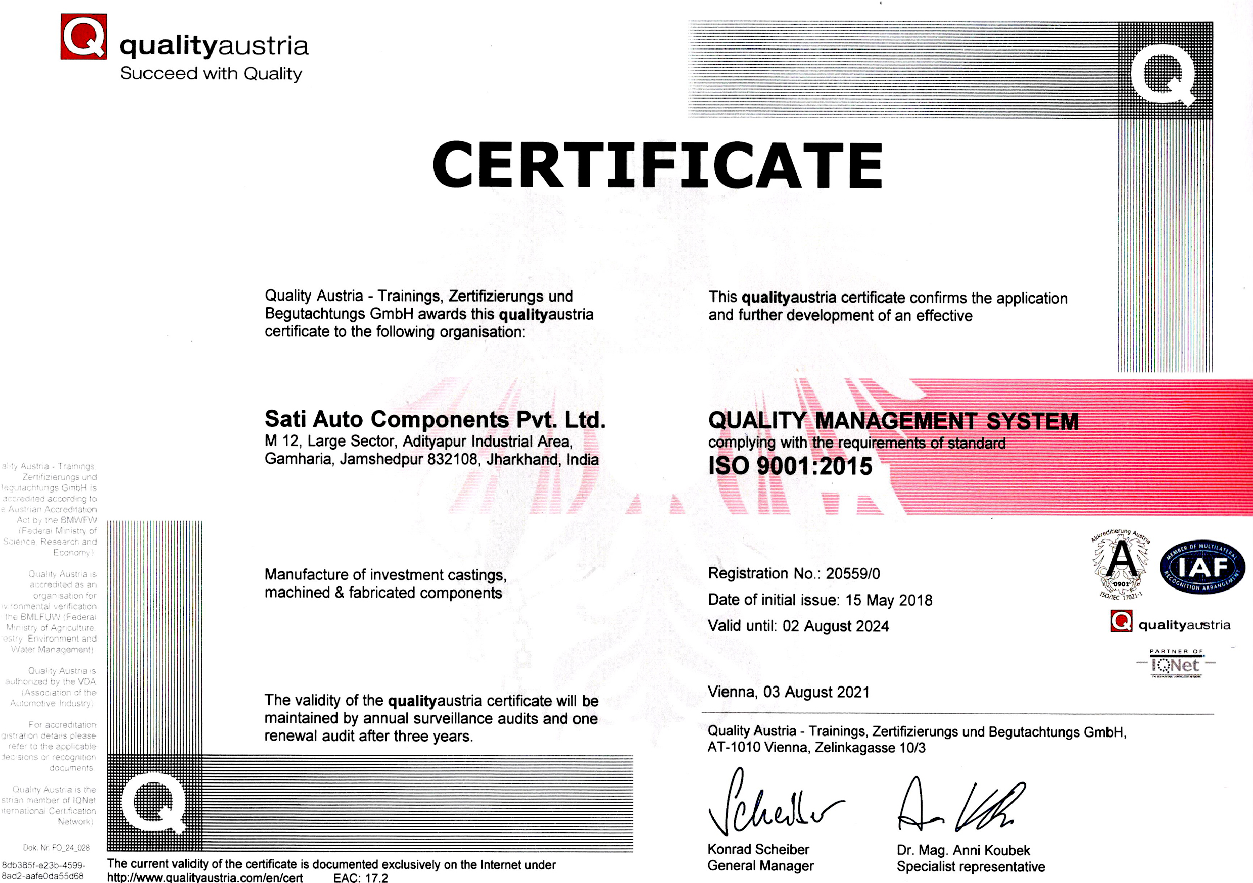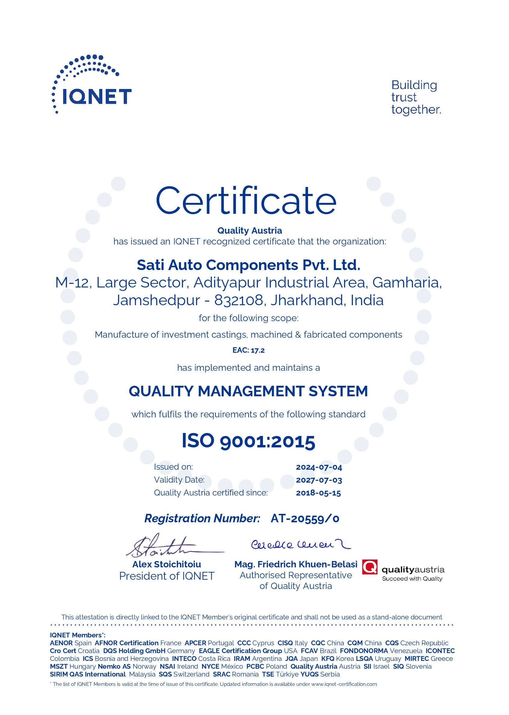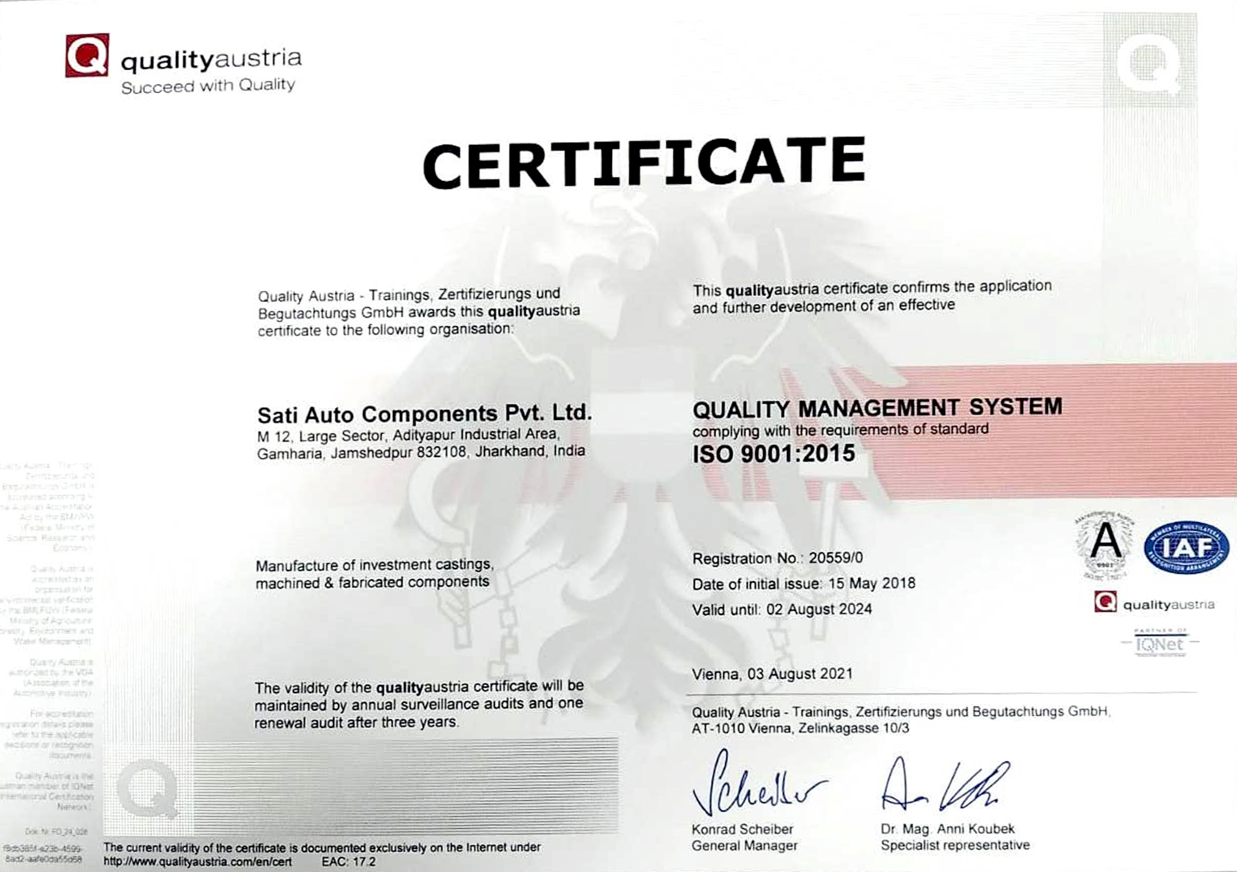 We are an IATF/16949:2016 certified auto components manufacturing company situated at Adityapur Industrial Area, Seraikela-Kharsawan , Jharkhand - 832108.